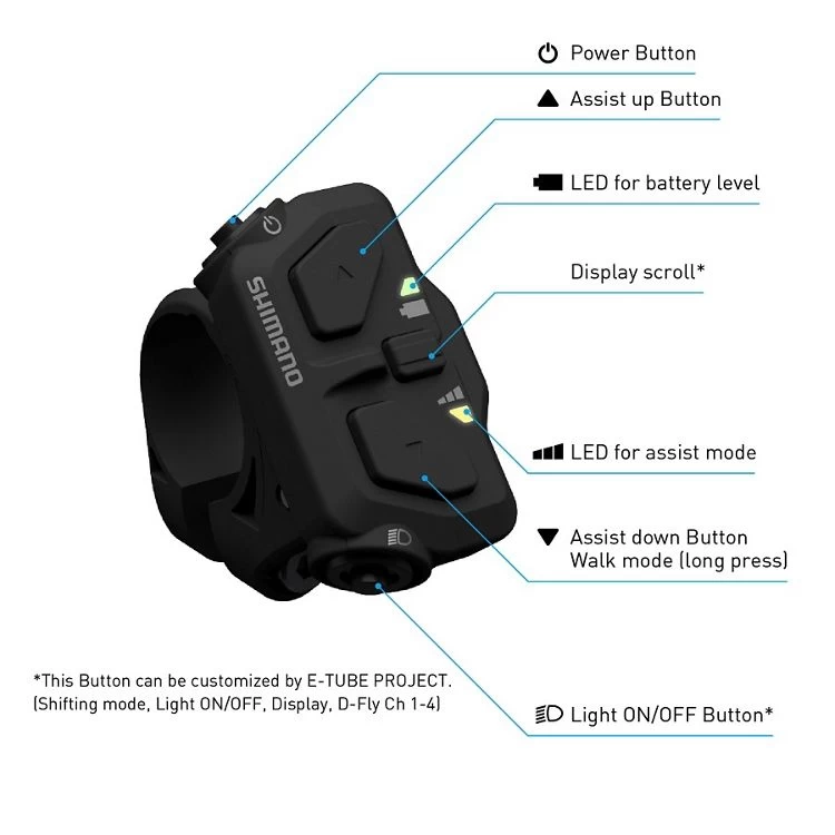 Cette manette gauche Shimano SW-EN600-L a été conçue pour les vélos électriques avec moteur Shimano EP801/EP600. Elle permet de changer rapidement de vitesses et de mode d’assistance grâce à trois boutons.