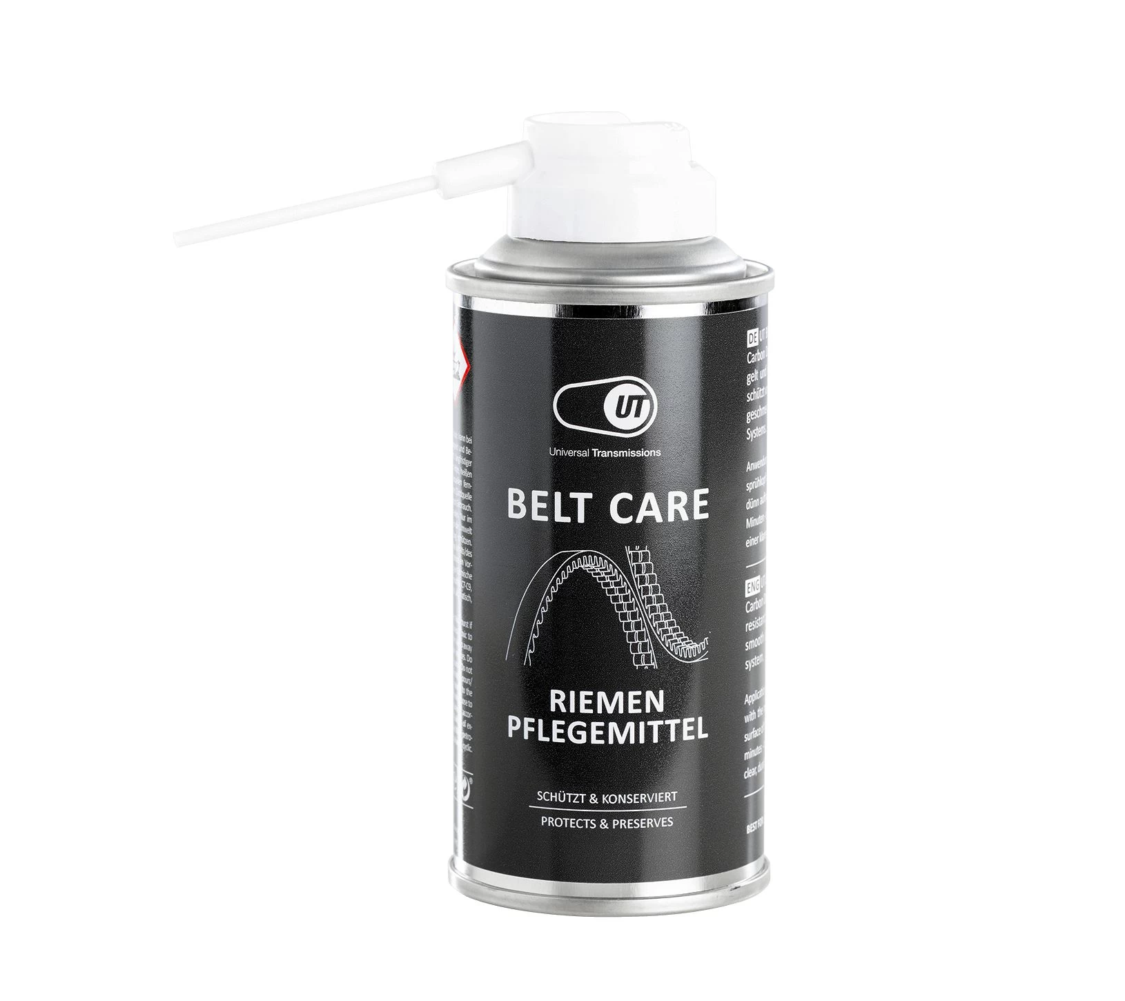 Le spray au silicone d’Universal Transmissions est idéal pour l’entretien et la maintenance des vélos électriques équipés d’une courroie de transmission Gates Carbon Drive. Le spray s’applique en fine couche sur la surface de roulement de la courroie et doit ensuite sécher. Le spray au silicone Gates entretient et protège efficacement la transmission Gates et favorise sa durée de vie. Veillez à ce que le silicone n’entre pas en contact avec les disques de frein.